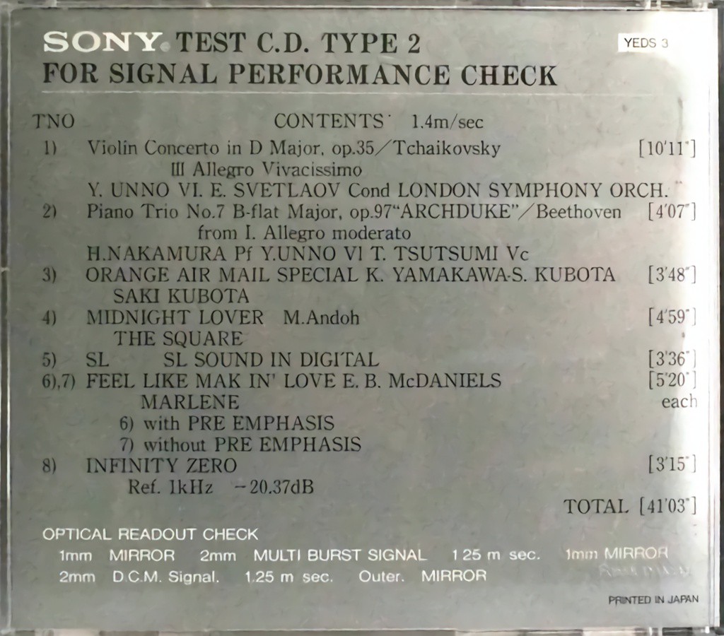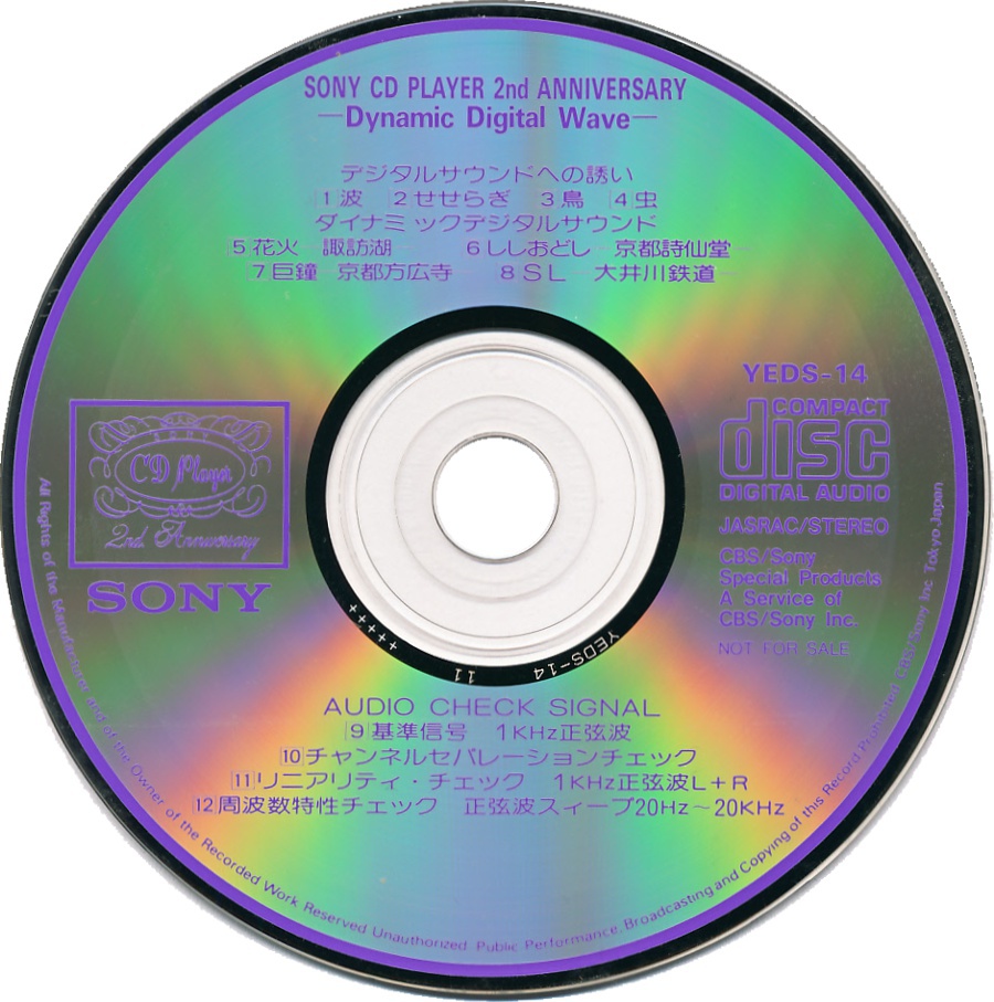 Sony Test Disc · YEDS-41 · Japan · © 1988 Sony Corporation / CBS-Sony Group Inc. Sony Test Disc · YEDS-41 · Japan · © 1988 Sony Corporation / CBS-Sony Group Inc. Sony Test Disc · YEDS-41 · Japan · © 1988 Sony Corporation / CBS-Sony Group Inc. Sony Test Disc · YEDS-41 · Japan · © 1988 Sony Corporation / CBS-Sony Group Inc. Sony Test Disc · YEDS-41 · Japan · © 1988 Sony Corporation / CBS-Sony Group Inc. Sony Test Disc · YEDS-41 · Japan · © 1988 Sony Corporation / CBS-Sony Group Inc. |