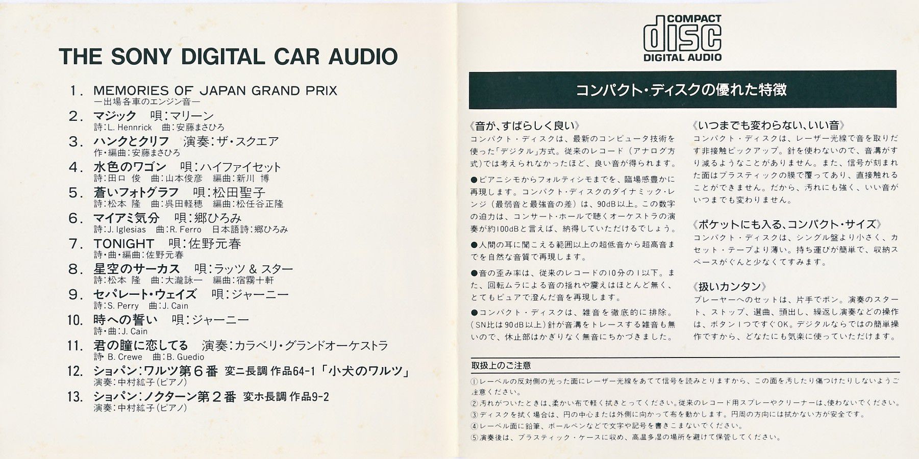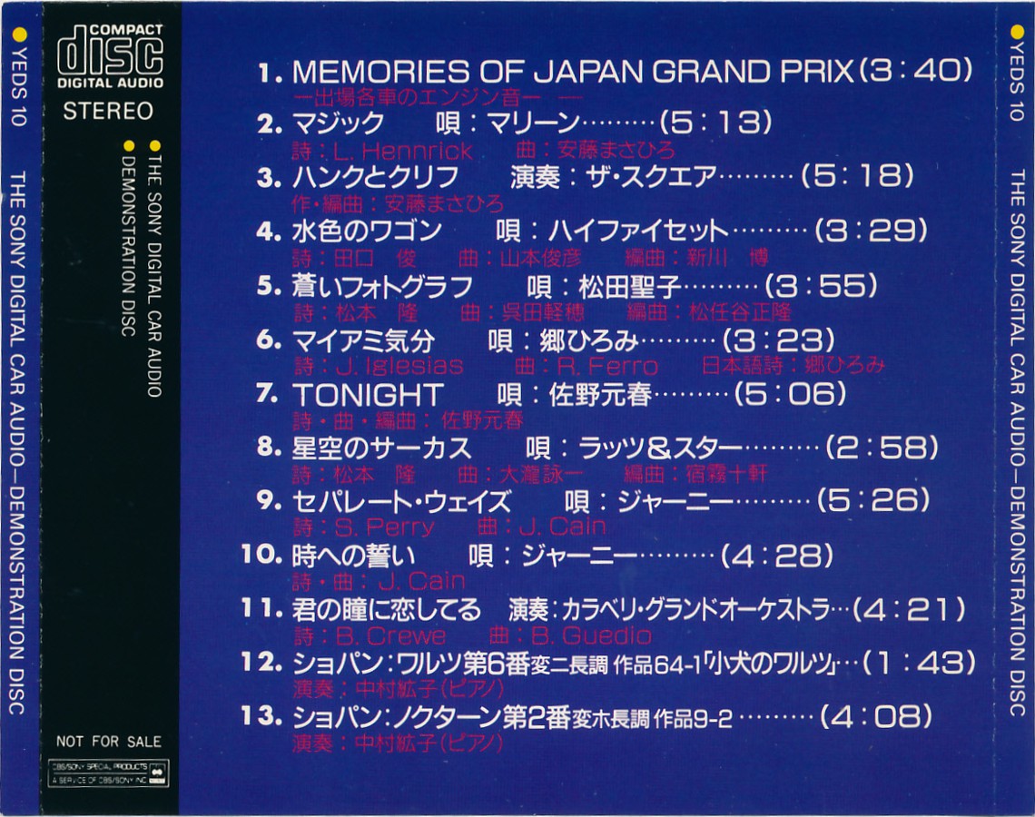 The Sony Digital Car Audio - Demonstration Disc [YEDS-10 • JP • 1984 • Demo] |