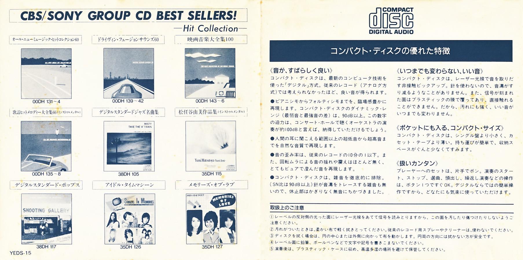 Edition zum 2-jährigen Jubiläum der CD · YEDS-12 · Japan · © 1984 Sony Corporation / CBS-Sony Group Inc. Edition zum 2-jährigen Jubiläum der CD · YEDS-12 · Japan · © 1984 Sony Corporation / CBS-Sony Group Inc. Edition zum 2-jährigen Jubiläum der CD · YEDS-12 · Japan · © 1984 Sony Corporation / CBS-Sony Group Inc. Edition zum 2-jährigen Jubiläum der CD · YEDS-12 · Japan · © 1984 Sony Corporation / CBS-Sony Group Inc. Edition zum 2-jährigen Jubiläum der CD · YEDS-12 · Japan · © 1984 Sony Corporation / CBS-Sony Group Inc. Edition zum 2-jährigen Jubiläum der CD · YEDS-12 · Japan · © 1984 Sony Corporation / CBS-Sony Group Inc. Box mit 5 Disc zum Jubiläum · YEDS-11˜15 · Japan · © 1984 Sony Corporation / CBS/Sony Group Inc. Box mit 5 Disc zum Jubiläum · YEDS-11˜15 · Japan · © 1984 Sony Corporation / CBS/Sony Group Inc. |