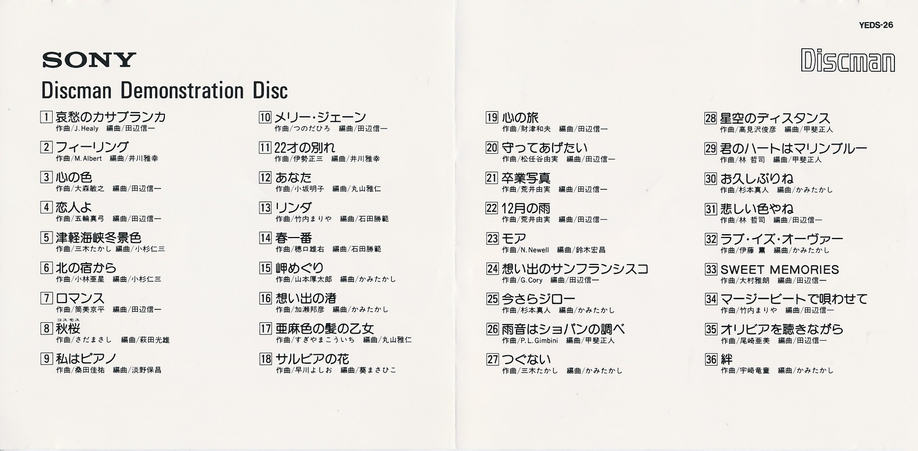 Sony Discman Demonstration Disc [YEDS-26 • JP • 1985 • Demo] |
