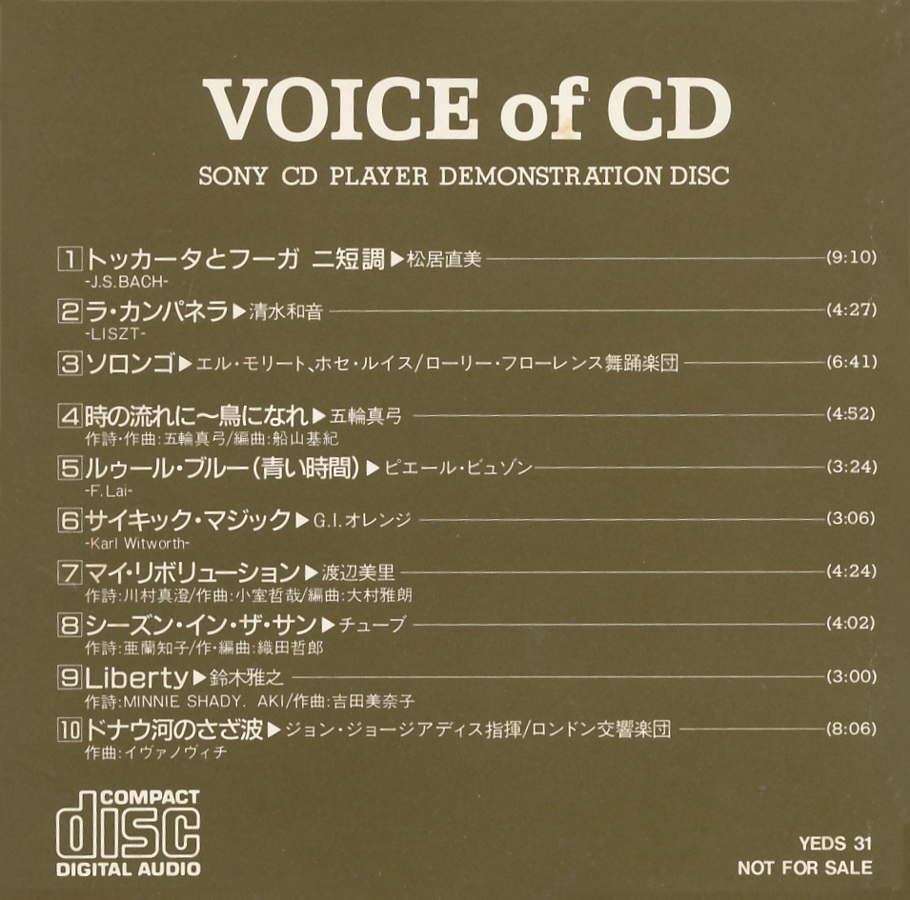 Sony CD Player Demonstration Disc - Voice of CD [YEDS-31 • JP • 1986 • Demo] |