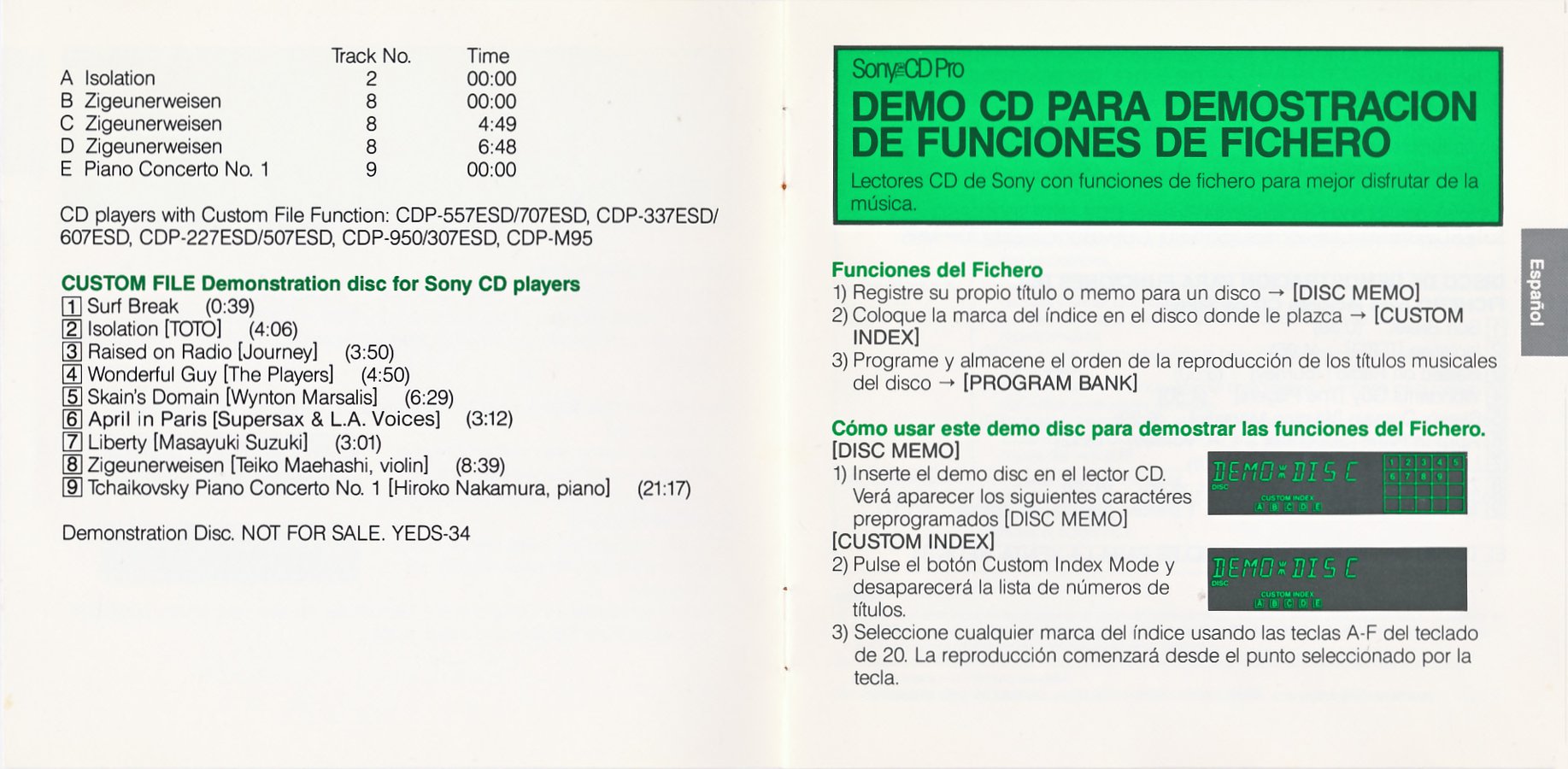 Sony Demonstration Disc [YEDS-38 • JP • 0000 • Demo] |
