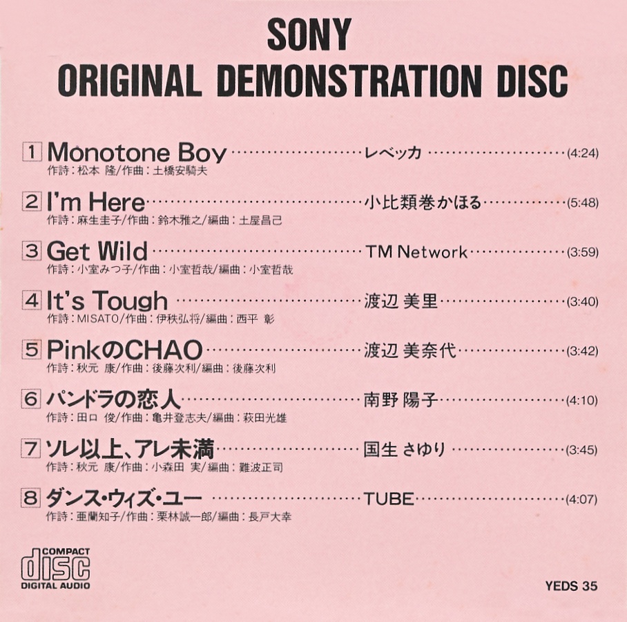 Sony Demonstration Disc · YEDS-40 · Japan · © 1988 Sony Corporation / CBS-Sony Group Inc. Sony Demonstration Disc · YEDS-40 · Japan · © 1988 Sony Corporation / CBS-Sony Group Inc. Sony Demonstration Disc · YEDS-40 · Japan · © 1988 Sony Corporation / CBS-Sony Group Inc. Sony Demonstration Disc · YEDS-40 · Japan · © 1988 Sony Corporation / CBS-Sony Group Inc. Sony Demonstration Disc · YEDS-40 · Japan · © 1988 Sony Corporation / CBS-Sony Group Inc. |