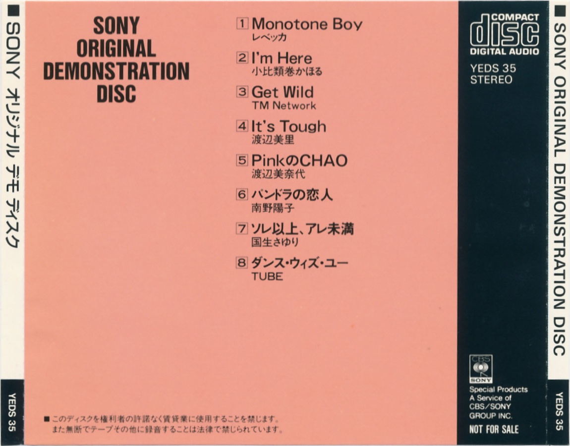 CD Demonstration Disc · YEDS-33 · Japan · © 1987 Sony Corporation / CBS-Sony Group Inc. CD Demonstration Disc · YEDS-33 · Japan · © 1987 Sony Corporation / CBS-Sony Group Inc. CD Demonstration Disc · YEDS-33 · Japan · © 1987 Sony Corporation / CBS-Sony Group Inc. CD Demonstration Disc · YEDS-33 · Japan · © 1987 Sony Corporation / CBS-Sony Group Inc. CD Demonstration Disc · YEDS-33 · Japan · © 1987 Sony Corporation / CBS-Sony Group Inc. CD Demonstration Disc · YEDS-33 · Japan · © 1987 Sony Corporation / CBS-Sony Group Inc. |