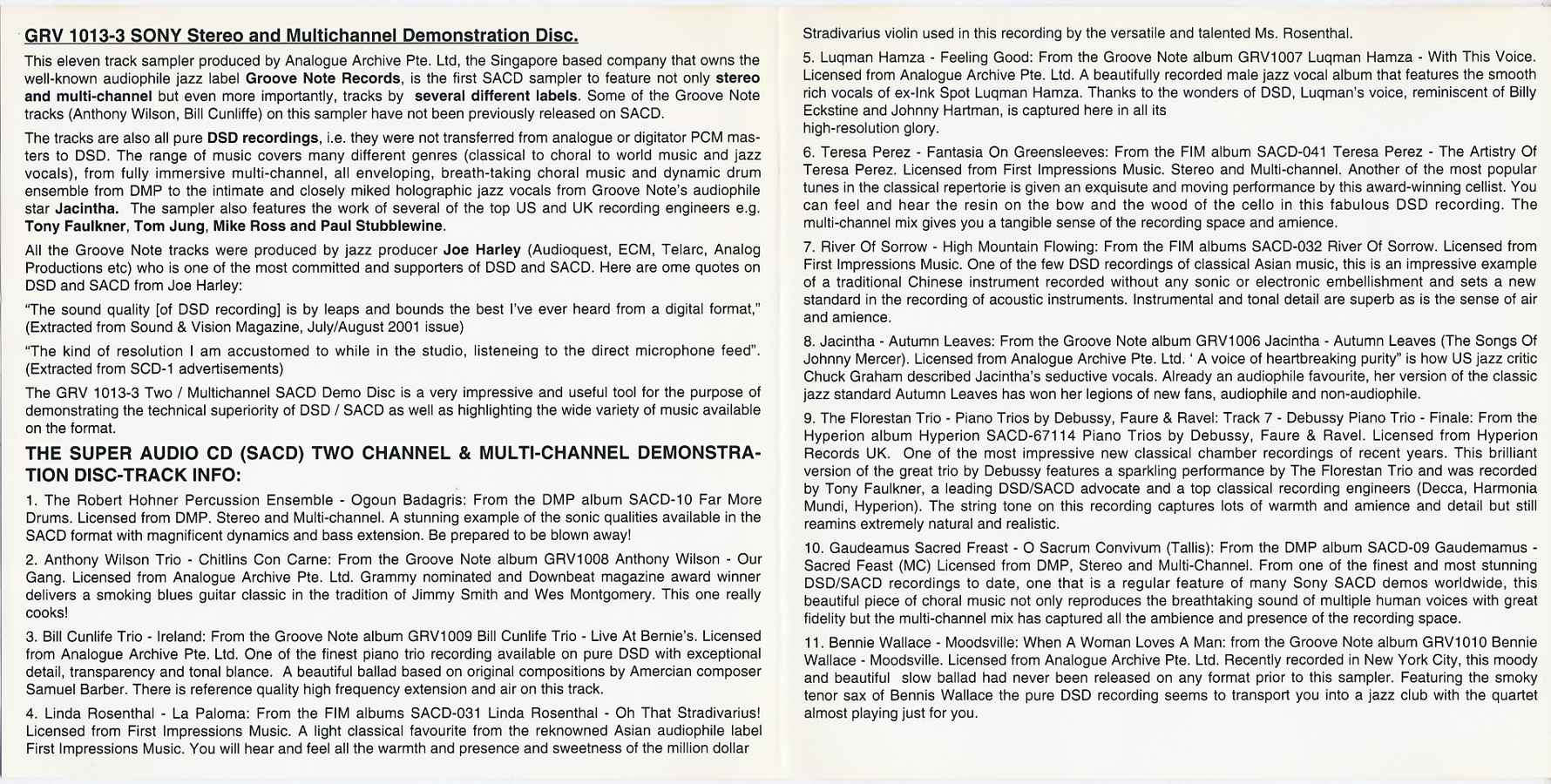 The SACD Stereo and Multichannel Demonstration Disc [GRV1013-3 • DE • 2001 • Demo] |