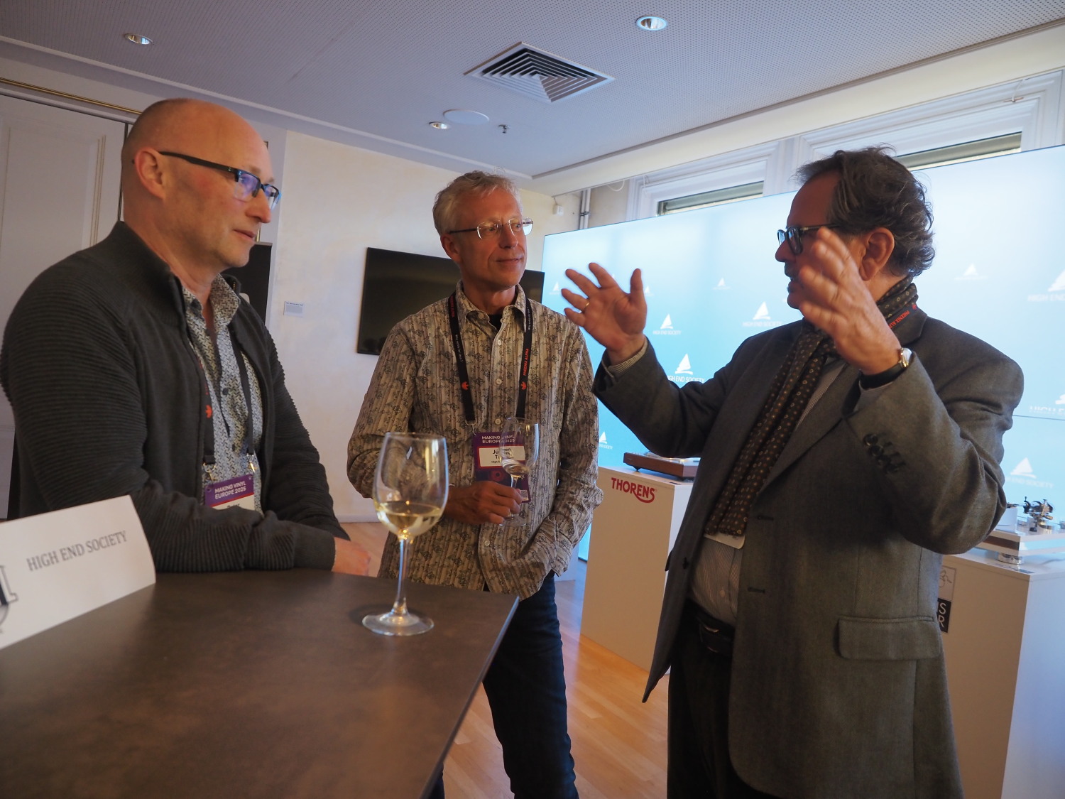 | Die internationale Konferenz "Making Vinyl Europe 2025" war dann auch in Haarlem vor Ort mit einem Stand vertreten, wo die Verbands-Mitgliedsfirmen ELAC, Thorens, Transrotor, TAD und die High End Society sich präsentierten. |