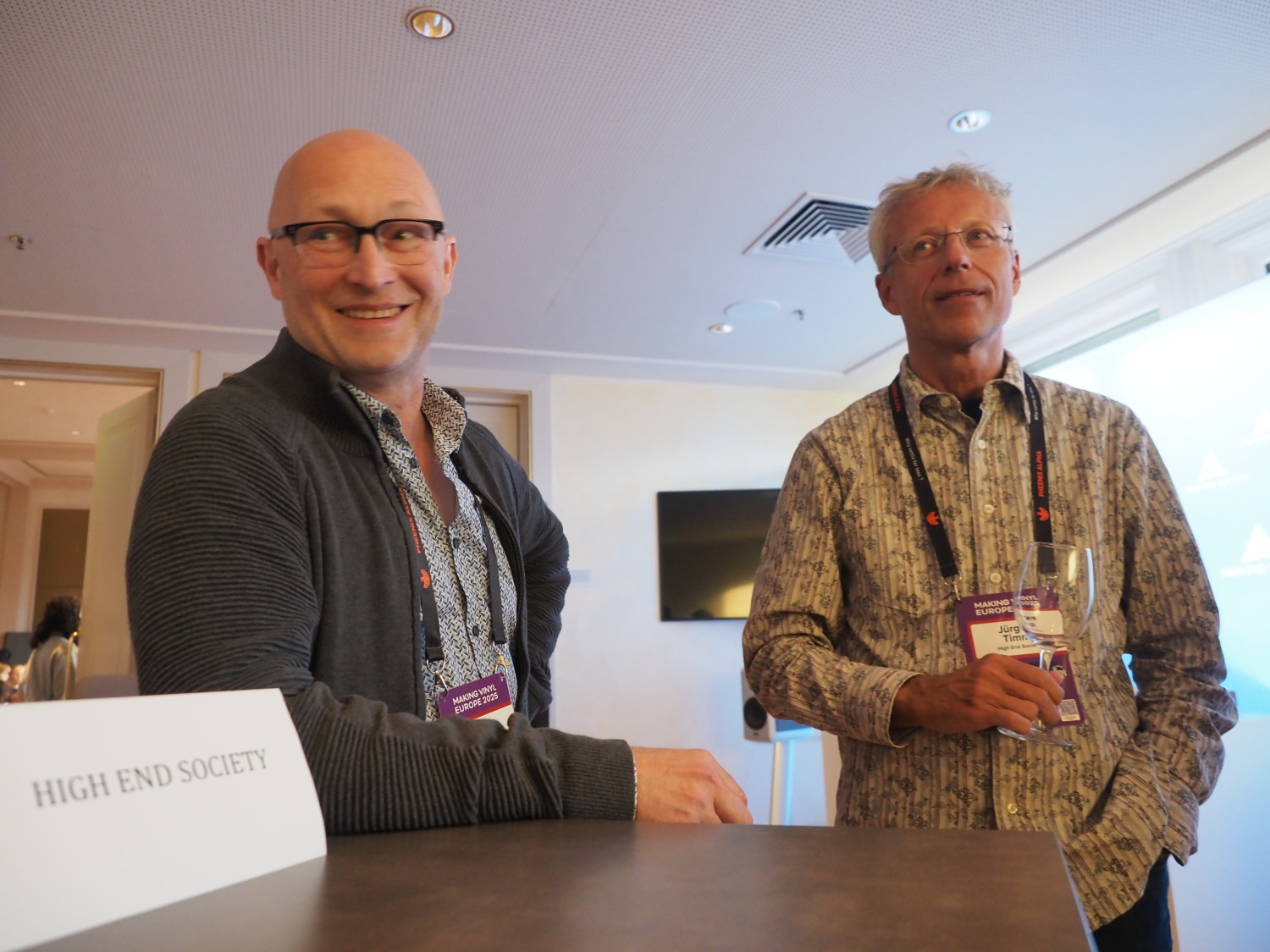 | Neben der Präsentation der High End Society in Haarlem war es auch einer der Programmpunkte der Konferenz und in dem Panel am 26. September 2025 "The Cult of Gear - Resisting Elitism in Audio Obsession and a Great Sounding Future for All" wurden Themen der Schallplatte diskutiert. Teilnehmer an dem Panel waren: Adrian Krupowicz (Unitra), Edward Forth (Audio-Technica), Jürgen Timm (High End Society), Gunter Kürten (Thorens), Dirk Räke (Transrotor). Moderator: Michael Fremer (Tracking Angel). |